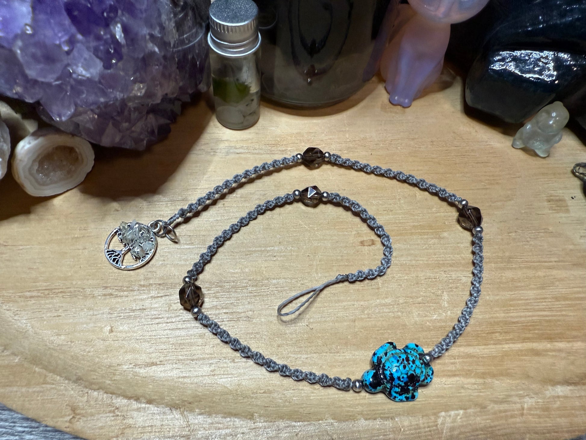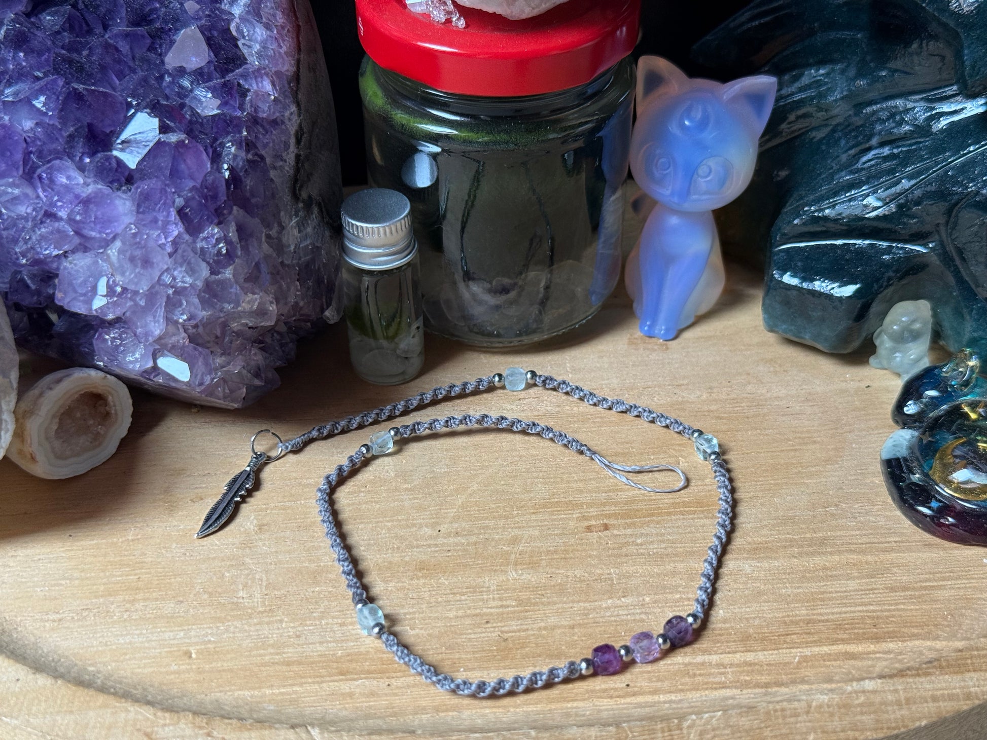 Diese lange Haarsträhne ist grau und es gibt mehrere Edelsteine zur Auswahl.