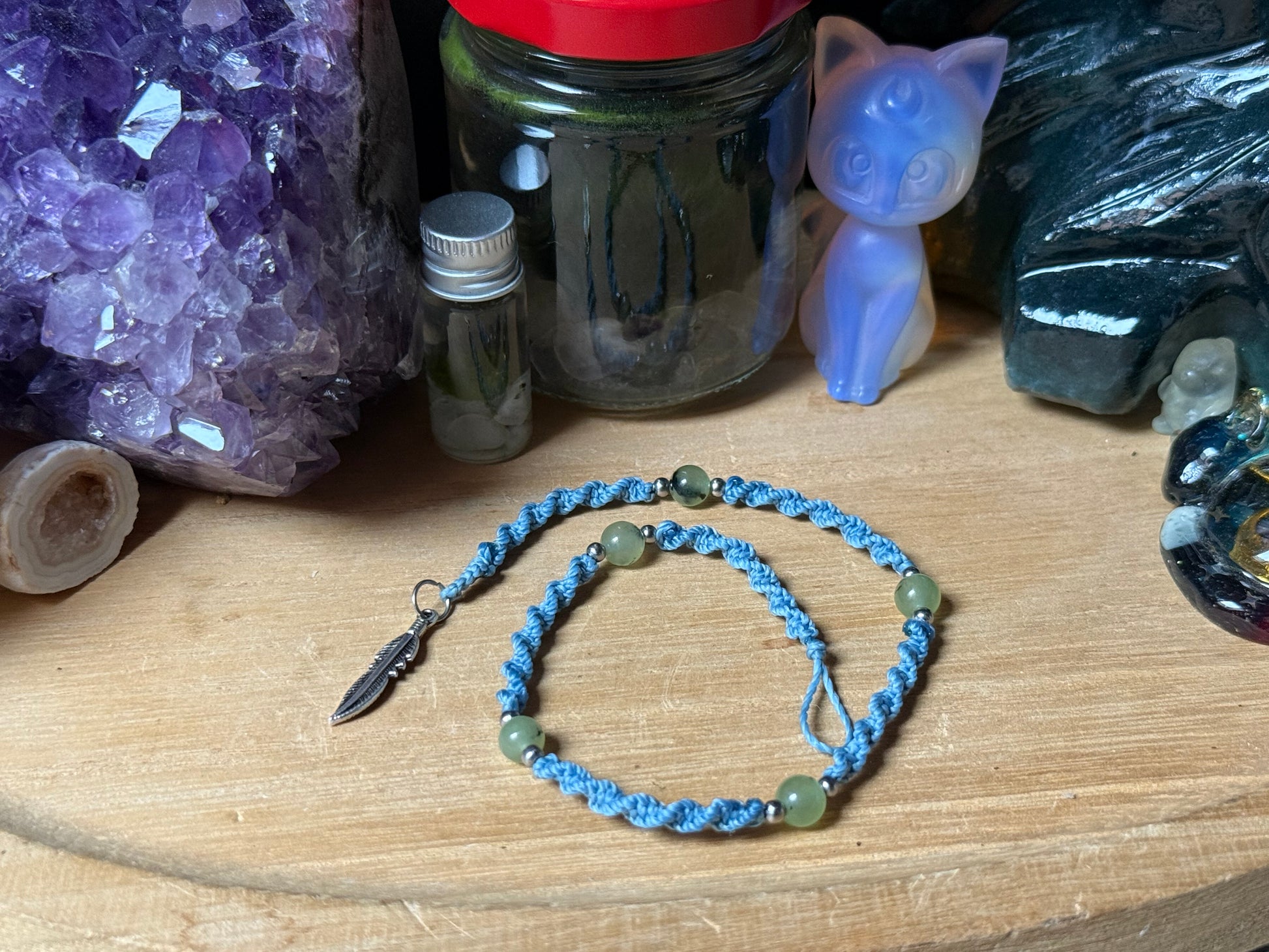 Diese lange Haarsträhne ist jeansblau und es gibt mehrere Edelsteine zur Auswahl.