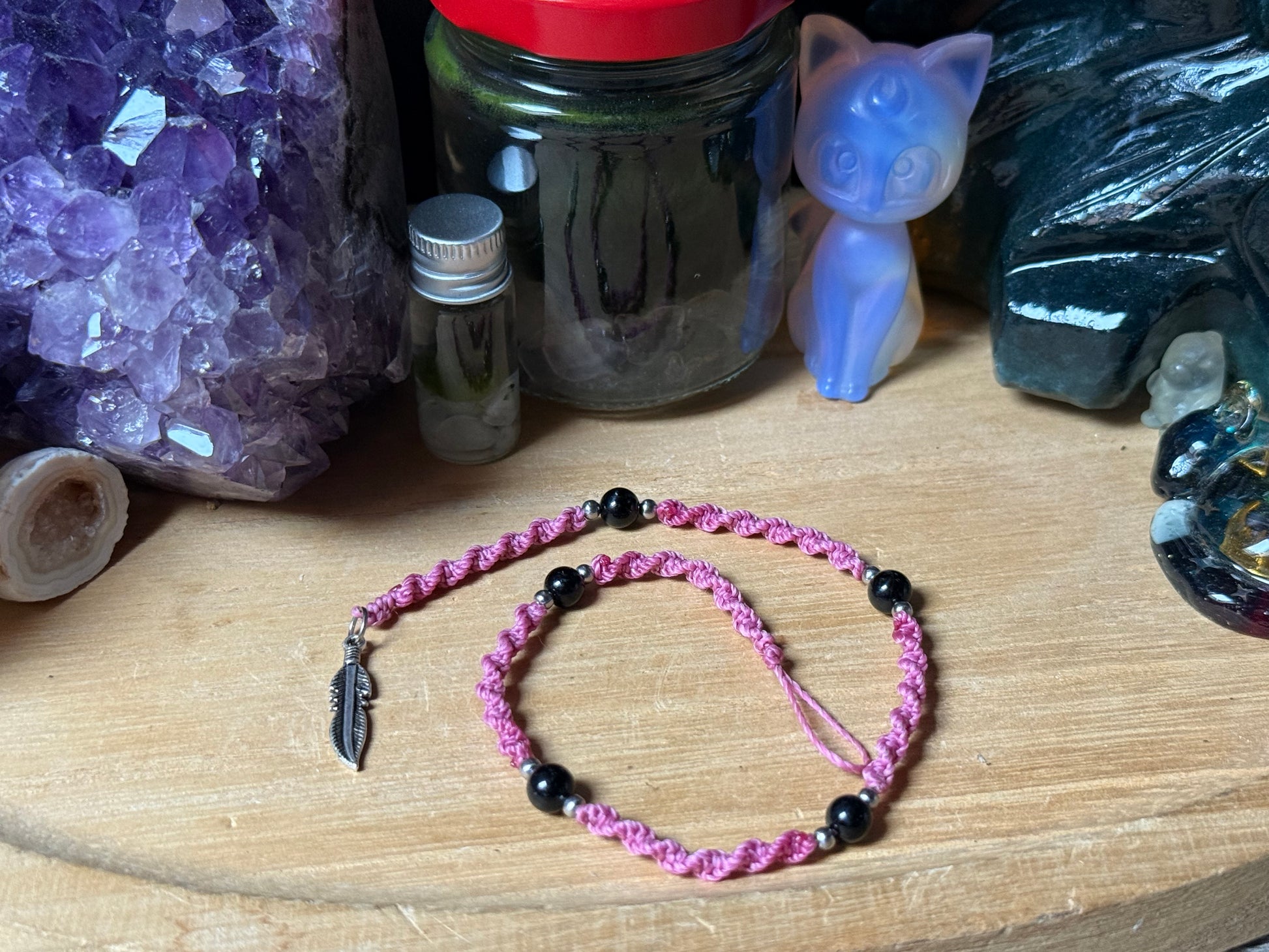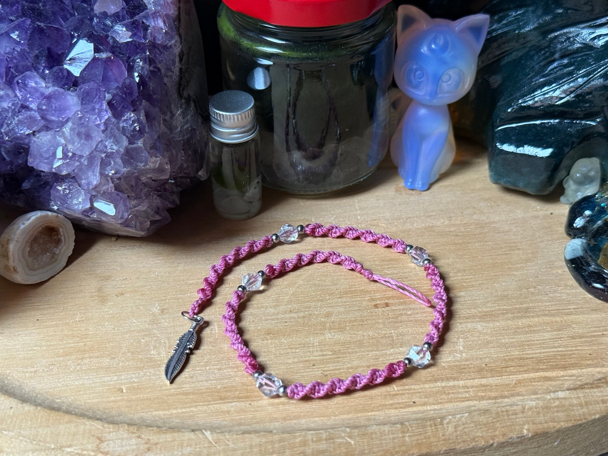 Diese lange Haarsträhne ist rosa und es gibt mehrere Edelsteine zur Auswahl.